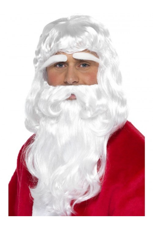 Barbe blanche soyeuse pour Père Noel : cette longue barbe constituée de poils blancs soyeux et brillants est légèrement ondulée et dotée d’une belle coupe en pointe. Sa large moustache assortie tombe en jolies « bacchantes ». Les gros sourcils blancs compètent la panoplie pour vous dissimuler intégralement.